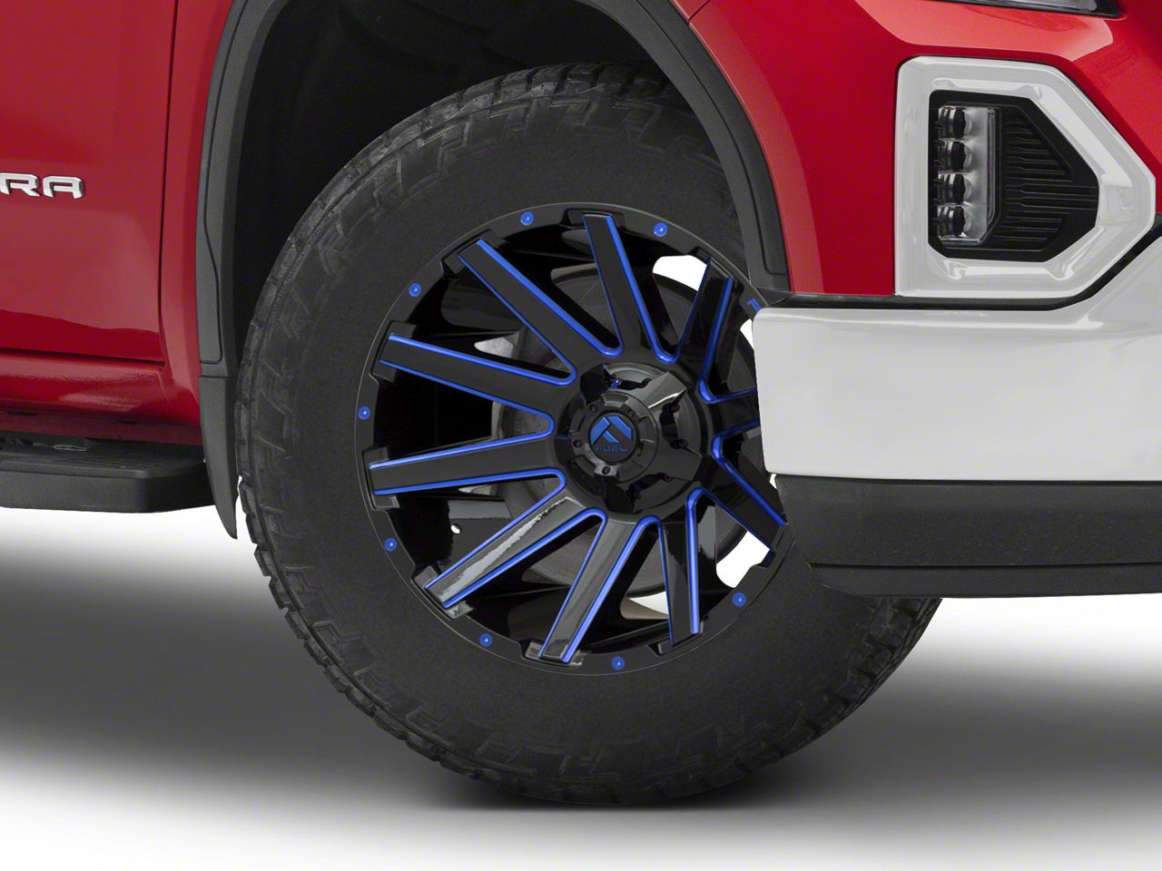 Application. This Fuel Wheels Contra Gloss Black with Blue Tinted Clear 6-Lug Wheel; 20x9; 2mm Offset with a backspace of 5.079 Inch, 129.1mm; and bolt pattern of 6 x 139.7mm (6 x 5.5-Inch), contributes to alignment, driving stability, and ensures a perfect fit with the vehicle model. Designed to fit the 2019-2026 Sierra 1500. Sold individually.