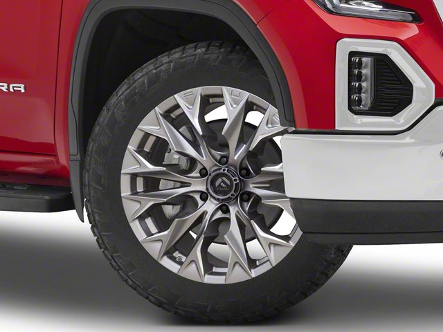 Application. This Fuel Wheels Flame Platinum 6-Lug Wheel; 22x12; -44mm Offset, with a backspacing of 4.768 Inch, 121.1mm and a bolt pattern of 6 x 139.7mm (6 x 5.5-Inch), offers superior alignment and stability. It's precisely engineered to enhance your vehicle's performance. Designed to fit 2019-2026 Sierra 1500 models, it ensures a perfect fit and impeccable style. Sold individually.