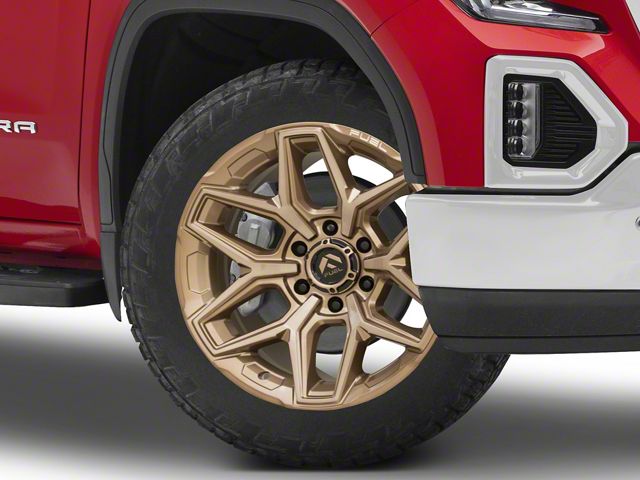 Application. This Fuel Wheels Flux Platinum Bronze 6-Lug Wheel; 22x10; -18mm Offset with a backspace of 4.791 Inch, 121.7mm and bolt pattern of 6 x 139.7mm (6 x 5.5-Inch) ensures impeccable alignment and driving stability. It's designed to fit the 2019-2026 Sierra 1500 models, sold individually.Fuel Wheels FC854ZR22106818N