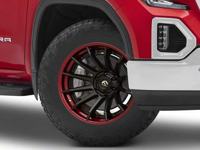 Application. This Fuel Wheels Fusion Forged Burn Matte Black with Candy Red Lip 6-Lug Wheel; 22x12; -44mm Offset, with a backspacing of 4.768 Inch, 121.1mm and a bolt pattern of 6 x 139.7mm (6 x 5.5-Inch), enhances your vehicle's alignment and driving stability. It is designed to fit 2019-2026 Sierra 1500 models, ensuring a perfect match for these specific vehicles. The wheel's specifications are tailored to provide optimal fit and performance, offering a seamless integration with your vehicle's design. Sold individually.