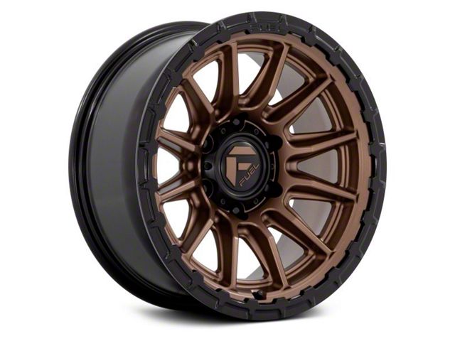 Fuel Wheels Piston Matte Bronze with Gloss Black Lip 6-Lug Wheel; 20x10; -18mm Offset exudes sophistication with its finish, offering a sleek and modern appeal to any vehicle it adorns. The design is meticulously crafted to enhance the aesthetic of your vehicle, giving it a distinctive and upscale look. Perfect for those seeking to elevate their vehicle's style, this wheel blends seamlessly with both contemporary and classic vehicle designs, making it a versatile choice for a wide range of vehicles. Its robust construction ensures durability, making it a reliable choice for drivers who value both style and quality.
