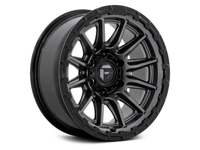 Fuel Wheels Piston Matte Gunmetal with Gloss Black Lip 6-Lug Wheel; 20x10; -18mm Offset exudes sophistication with its finish, offering a sleek and modern appeal to any vehicle it adorns. The design is meticulously crafted to enhance the aesthetic of your vehicle, giving it a distinctive and upscale look. Perfect for those seeking to elevate their vehicle's style, this wheel blends seamlessly with both contemporary and classic vehicle designs, making it a versatile choice for a wide range of vehicles. Its robust construction ensures durability, making it a reliable choice for drivers who value both style and quality.