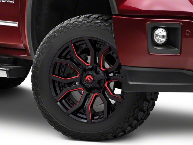 Application. This Fuel Wheels Rage Gloss Black Red Tinted 6-Lug Wheel; 20x9; 1mm Offset with a backspace of 5.2004 Inch, 128.1mm and bolt pattern of 6 x 139.7mm (6 x 5.5-Inch) ensures impeccable alignment and driving stability. It's designed to fit the 2014-2018 Sierra 1500 models, sold individually.Fuel Wheels D71220909850
