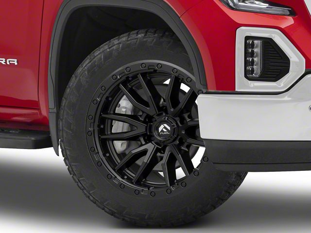 Application. This Fuel Wheels Rebel Matte Black 6-Lug Wheel; 22x12; -44mm Offset with a backspace of 4.768 Inch, 121.2mm and bolt pattern of 6 x 139.7mm (6 x 5.5-Inch) ensures impeccable alignment and driving stability. It's designed to fit the 2019-2026 Sierra 1500 models, sold individually.Fuel Wheels D67922208447