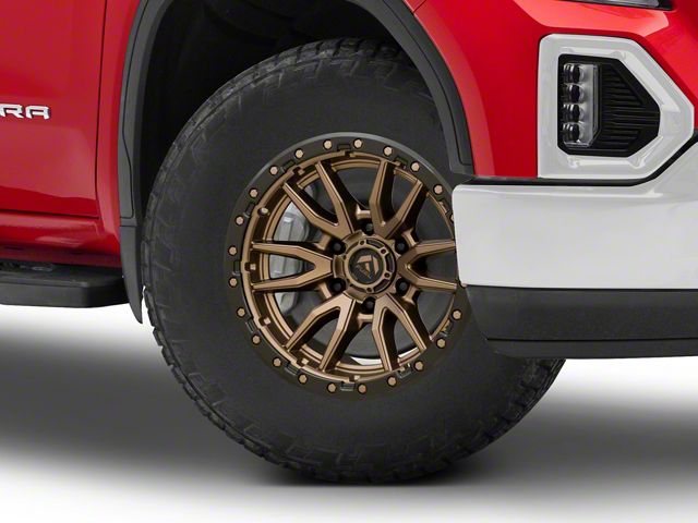 Application. This Fuel Wheels Rebel Matte Bronze with Black Bead Ring 6-Lug Wheel; 18x9; -12mm Offset with a backspace of 4.528 Inch, 115.1mm; and bolt pattern of 6 x 139.7mm (6 x 5.5-Inch), contributes to alignment, driving stability, and ensures a perfect fit with the vehicle model. Designed to fit the 2019-2026 Sierra 1500. Sold individually.