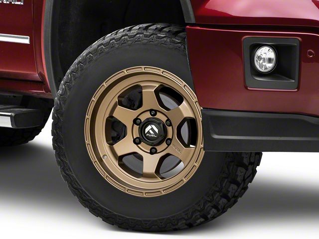 Application. This Fuel Wheels Shok Matte Bronze 6-Lug Wheel; 17x10; -18mm Offset, with a backspace of 4.792 Inch, 121.8mm and bolt pattern of 6 x 139.7mm (6 x 5.5-Inch), is designed to enhance alignment and driving stability, ensuring a perfect fit with the vehicle model. Specifically designed to fit 2014-2018 Sierra 1500 models, this wheel's specifications contribute to a seamless alignment and stable driving experience by ensuring the wheel fits perfectly within the vehicle's wheel well, reducing the risk of rubbing issues and optimizing handling characteristics. Sold individually.