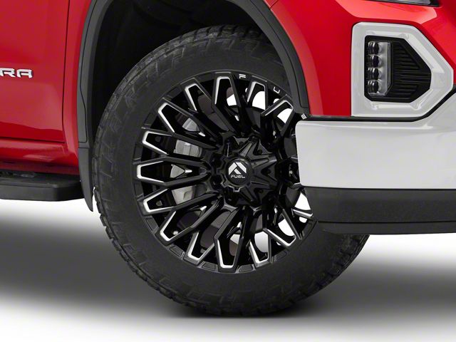 Application. This Fuel Wheels Strike Gloss Black Milled 6-Lug Wheel; 22x10; -18mm Offset, with a backspace of 4.791 Inch, 121.7mm and bolt pattern of 6 x 139.7mm (6 x 5.5-Inch), is designed to provide not only a striking visual appeal but also to contribute significantly to the alignment and driving stability of the vehicle. Its specifications ensure a precise fit with the vehicle model, enhancing the overall driving experience. Built to fit the 2019-2026 Sierra 1500, this wheel is sold individually.