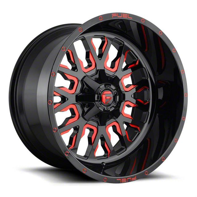 Fuel Wheels Stroke Gloss Black Red Tinted Clear 6-Lug Wheel; 24x14; -75mm Offset The Fuel Wheels Stroke Gloss Black Red Tinted Clear 6-Lug Wheel showcases a blend of race-inspired aesthetics, ideal for those seeking a premium and robust appearance. Its design complements various vehicle styles, adding sophistication.