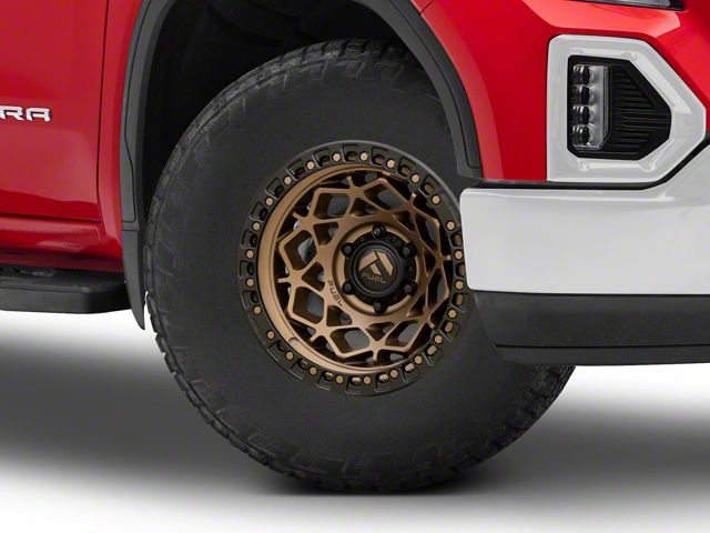 Application. This Fuel Wheels Unit Bronze with Matte Black Ring 6-Lug Wheel; 17x9; 1mm Offset with a backspace of 5.2004 Inch, 128.1mm and bolt pattern of 6 x 139.7mm (6 x 5.5-Inch) ensures impeccable alignment and driving stability. It's designed to fit the 2019-2026 Sierra 1500 models, sold individually.Fuel Wheels D78517908450