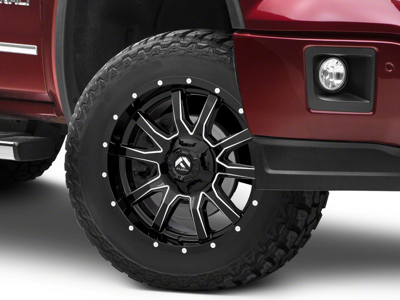 Application. This Fuel Wheels Vandal Gloss Black Milled 6-Lug Wheel; 20x9; 1mm Offset, with a backspace of 5.04 Inch, 128.1mm; and bolt pattern of 6 x 139.7mm (6 x 5.5-Inch), ensures precise alignment and unwavering stability. Designed to fit the 2014-2018 Sierra 1500 models, it stands out as a tailored enhancement. Sold individually.