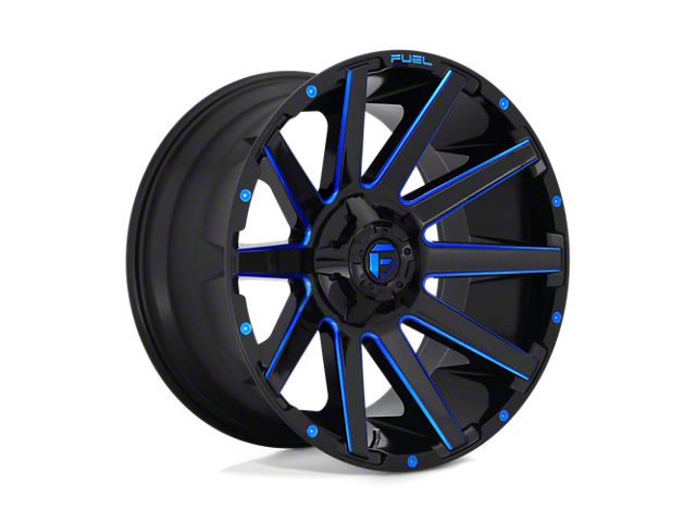 Fuel Wheels Contra Gloss Black with Blue Tinted Clear 8-Lug Wheel; 20x10; -18mm Offset The Fuel Wheels Contra Gloss Black with Blue Tinted Clear 8-Lug Wheel combines a sleek, sophisticated design with premium construction that enhances the visual appeal and complements a wide range of vehicle styles. This wheel is perfect for those seeking to make a bold statement while maintaining elegance and robustness.