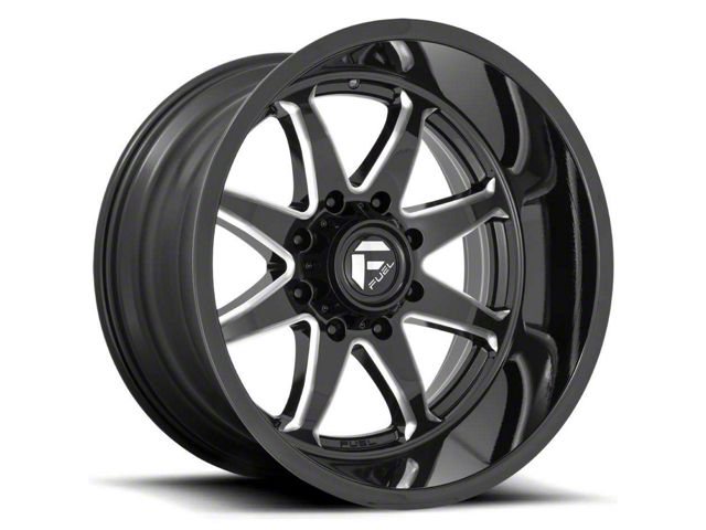 The 22x12 Fuel Wheels Hammer Gloss Black Milled 8-Lug Wheel is completed in a high-quality gloss black finish, with steel milled accents. Thanks to a durable clear coat, the finish looks amazing and also protects against the rigors of driving.