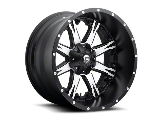Fuel Wheels Nutz Matte Black Machined 8-Lug Wheel; 20x10; -12mm Offset - Enhance your vehicle's style with the Fuel Wheels wheel. This wheel's distinctive design and finish complement your vehicle's aesthetics, making a bold statement. It's crafted to accentuate the unique character of your car, emphasizing a premium and robust appeal.