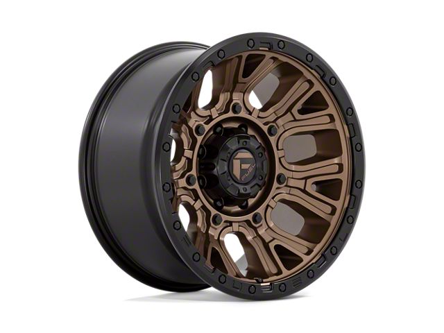 Fuel Wheels Traction Matte Bronze with Black Ring 8-Lug Wheel; 20x10; -18mm Offset The Fuel Wheels Traction Matte Bronze with Black Ring 8-Lug Wheel combines a sleek, sophisticated design with premium construction that enhances the visual appeal and complements a wide range of vehicle styles. This wheel is perfect for those seeking to make a bold statement while maintaining elegance and robustness.