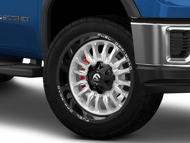 Fuel Wheels Arc Silver Brushed Face with Milled Black Lip 8-Lug Wheel; 22x10; -18mm Offset The Fuel Wheels Arc Silver Brushed Face with Milled Black Lip 8-Lug Wheel combines a sleek, sophisticated design with premium construction that enhances the visual appeal and complements a wide range of vehicle styles. This wheel is perfect for those seeking to make a bold statement while maintaining elegance and robustness.