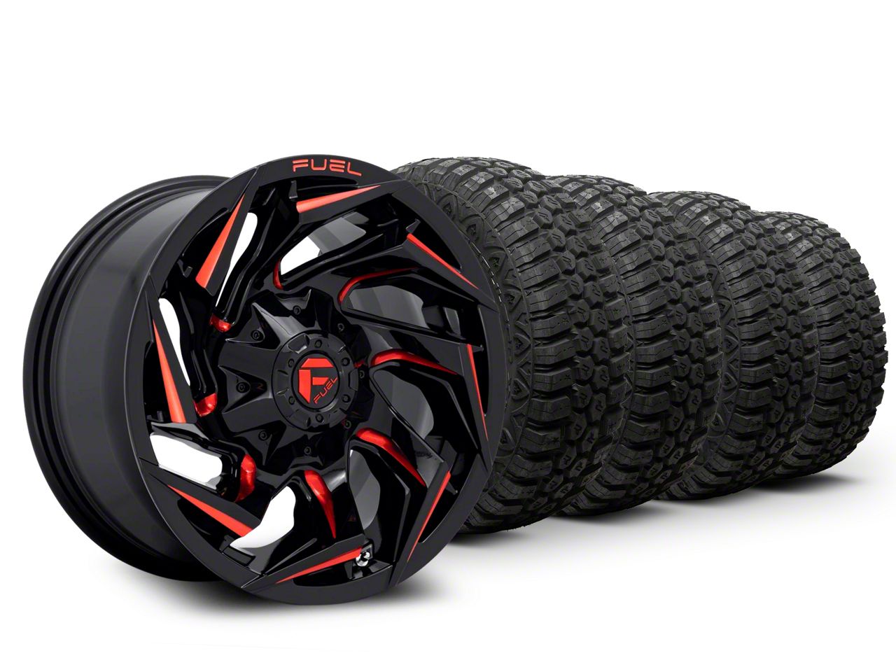Mounted and Balanced Wheel and Tire Kit. This wheel and tire combo kit features (4) 17x9 Fuel Wheels Reaction Gloss Black Milled with Red Tint Wheels and (4) Rolling Big Power Tires Repulsor X/T RX 33" - 285/70R17 tires that have been put together into an easy to buy kit that arrives to your door already mounted and balanced ready to be installed on your vehicle.