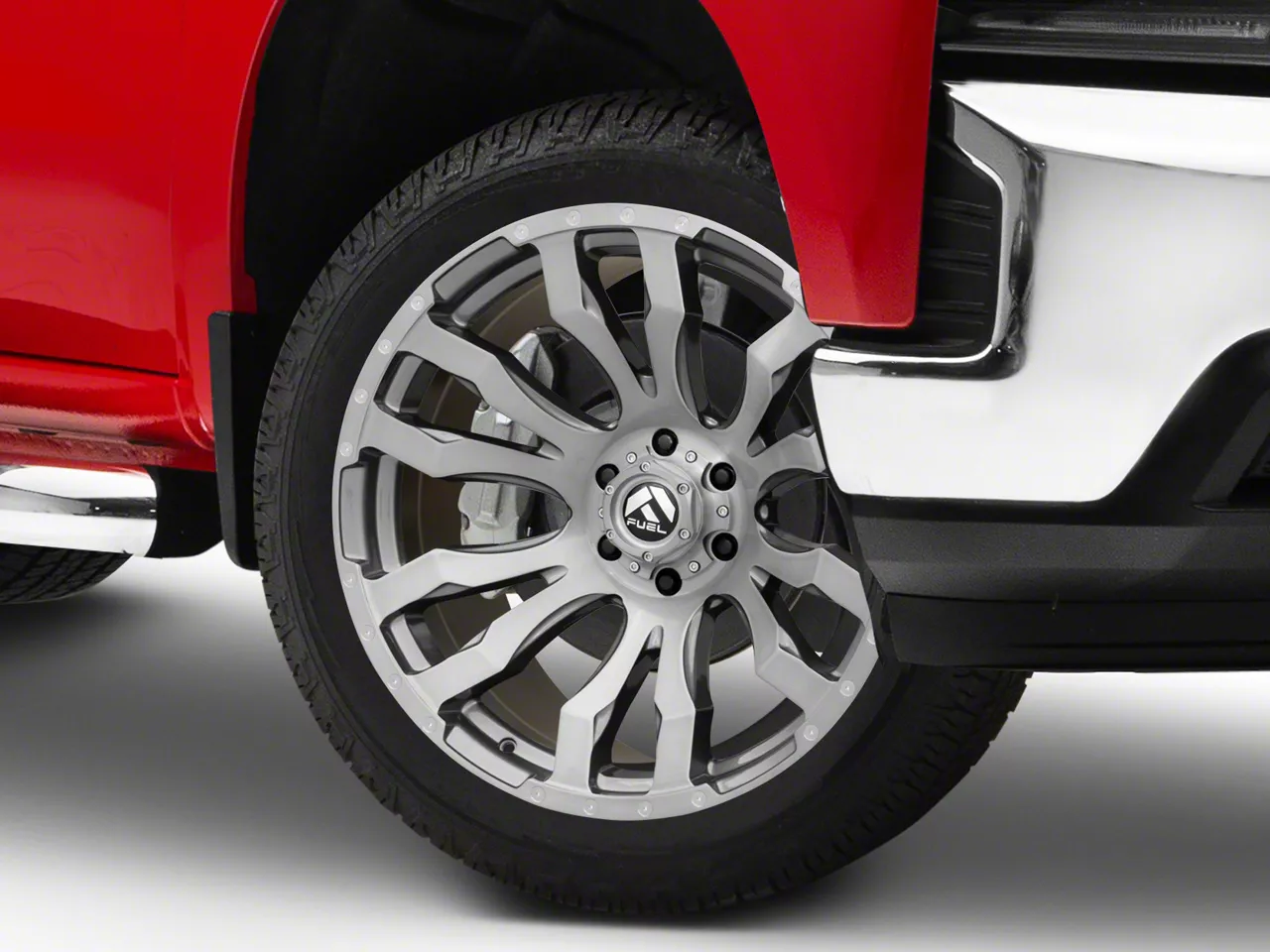 Application. This Fuel Wheels Blitz Platinum Brushed Gunmetal 6-Lug Wheel; 22x12; -44mm Offset, with a backspace of 4.768 Inch, 121.2mm and bolt pattern of 6 x 139.7mm (6 x 5.5-Inch), ensures optimal alignment and driving stability. It is designed to fit 2019-2026 Silverado 1500 models. Sold individually.