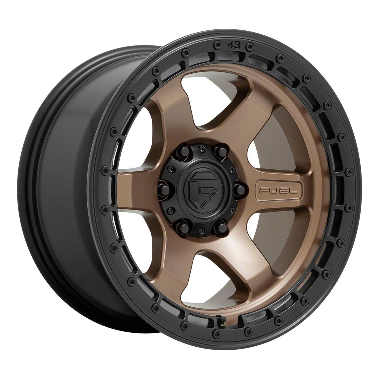 Fuel Wheels Block Matte Bronze with Black Ring 6-Lug Wheel; 18x9; 20mm Offset offers a striking balance between style and durability. The design speaks to the brand's commitment to quality, enhancing the vehicle's appearance with its distinct look. This wheel, with its unique aesthetics, is ideal for drivers who appreciate a blend of modern design and robust functionality.