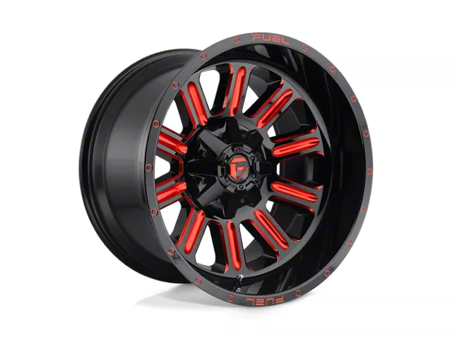 Fuel Wheels Hardline Gloss Black with Red Tinted Clear 6-Lug Wheel; 18x9; 20mm Offset The Fuel Wheels Hardline Gloss Black with Red Tinted Clear 6-Lug Wheel combines a sleek, sophisticated design with premium construction that enhances the visual appeal and complements a wide range of vehicle styles. This wheel is perfect for those seeking to make a bold statement while maintaining elegance and robustness.