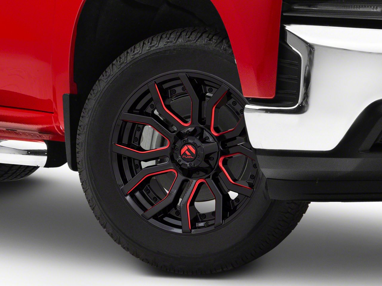 Application. This Fuel Wheels Rage Gloss Black Red Tinted 6-Lug Wheel; 20x9; 1mm Offset with a backspace of 5.2004 Inch, 128.1mm and bolt pattern of 6 x 139.7mm (6 x 5.5-Inch) ensures impeccable alignment and driving stability. It's designed to fit the 2019-2026 Silverado 1500 models, sold individually.Fuel Wheels D71220909850