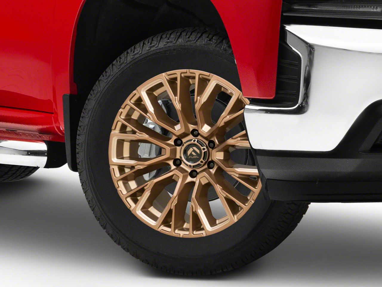 Application. This Fuel Wheels Rebar Platinum Bronze Milled 6-Lug Wheel; 20x9; 1mm Offset, with a backspacing of 5.039 Inch, 128mm and a bolt pattern of 6 x 139.7mm (6 x 5.5-Inch), is designed to fit 2019-2026 Silverado 1500 models. Sold individually, it's an ideal choice for those seeking to elevate their vehicle's appearance and performance.