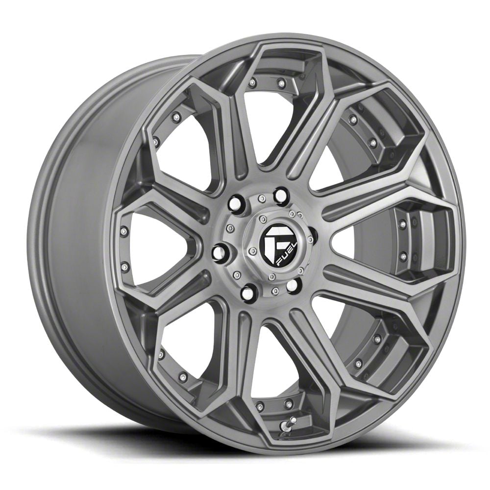 Fuel Wheels Siege Platinum Brushed Gunmetal 6-Lug Wheel; 20x10; -2018mm Offset - Enhance your vehicle's style with the Fuel Wheels wheel. This wheel's distinctive design and finish complement your vehicle's aesthetics, making a bold statement. It's crafted to accentuate the unique character of your car, emphasizing a premium and robust appeal.