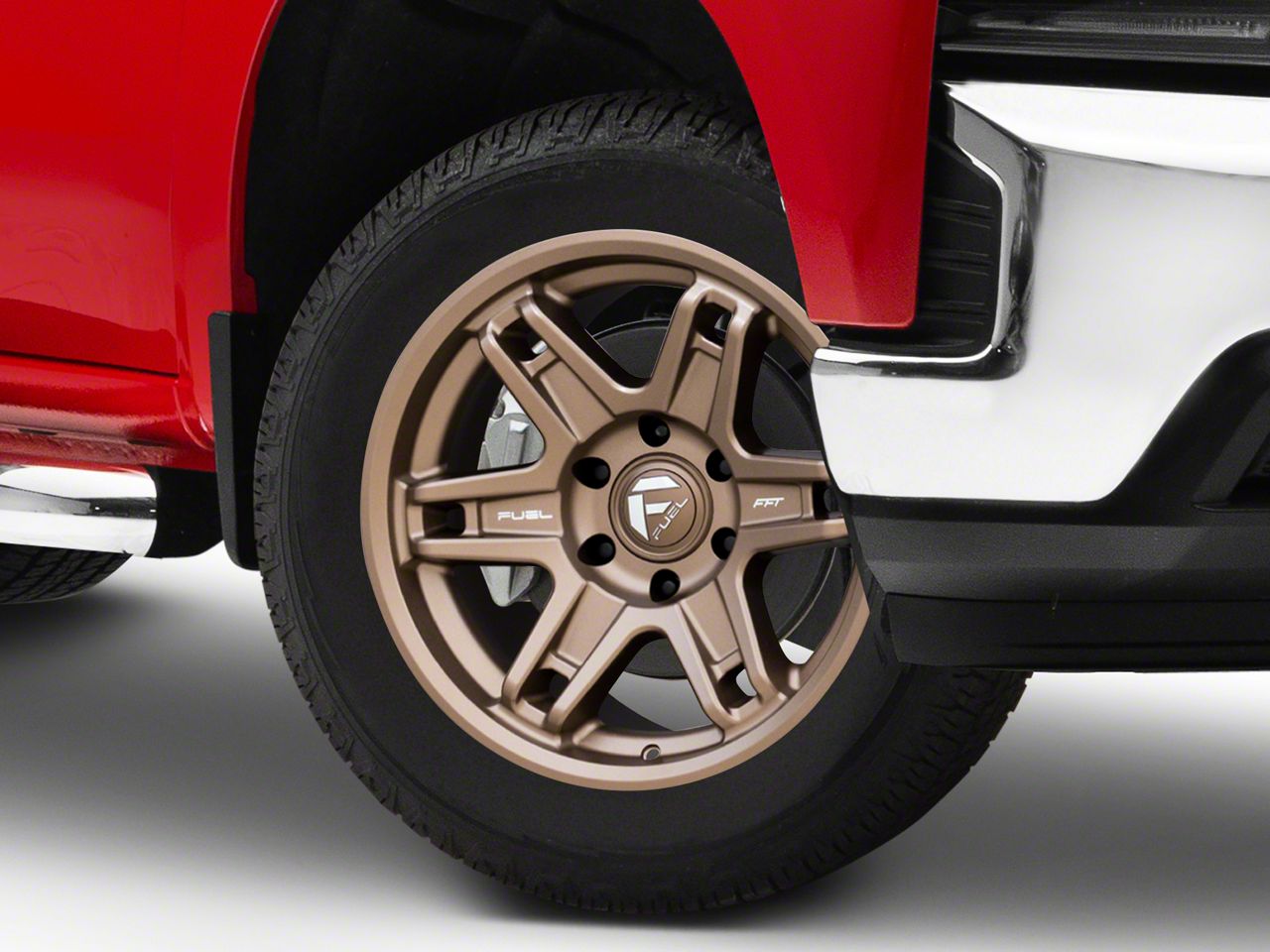 Application. The Fuel Wheels Slayer Matte Bronze 6-Lug Wheel; 20x9; 1mm Offset, with a backspace of 5.039 Inch, 128mm and a bolt pattern of 6 x 139.7mm (6 x 5.5-Inch), is designed to enhance alignment and stability for a smooth driving experience. Specifically tailored to fit 2019-2026 Silverado 1500 models, it ensures a perfect blend of style and functionality. Sold individually, this wheel is an ideal upgrade for your vehicle.