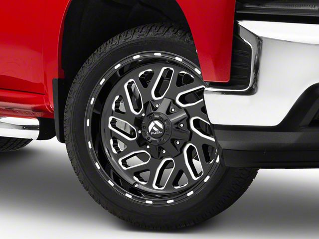 Application. This Fuel Wheels Triton Gloss Black Milled 6-Lug Wheel; 26x12; -44mm Offset, with a backspace of 4.768 Inch, 121.1mm; and bolt pattern of 6 x 139.7mm (6 x 5.5-Inch), is designed to fit the 2019-2026 Silverado 1500 . The precise specifications of the wheel ensure proper alignment and driving stability, perfectly complementing the vehicle's model. Sold individually.