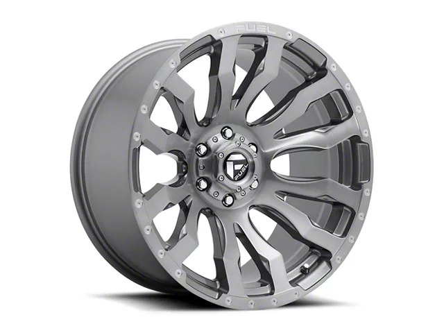 The 20x9 Fuel Wheels Blitz Platinum Brushed Gunmetal 8-Lug Wheel; ; 1mm Offset is completed in a high quality, gunmetal gray finish for an aggressive appearance that will make everyone green with envy.