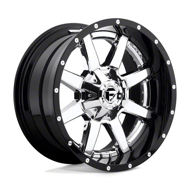 Fuel Wheels Maverick Chrome with Gloss Black Lip 8-Lug Wheel; 24x12; -44mm Offset The Fuel Wheels Maverick Chrome with Gloss Black Lip 8-Lug Wheel combines a sleek, sophisticated design with premium construction that enhances the visual appeal and complements a wide range of vehicle styles. This wheel is perfect for those seeking to make a bold statement while maintaining elegance and robustness.