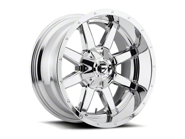 Fuel Wheels Maverick Chrome 8-Lug Wheel; 20x9; 20mm Offset exudes an unparalleled aesthetic appeal that perfectly complements a range of vehicle styles. The unique design crafted by Fuel Wheels not only accentuates the visual appeal but also seamlessly aligns with contemporary vehicle aesthetics.