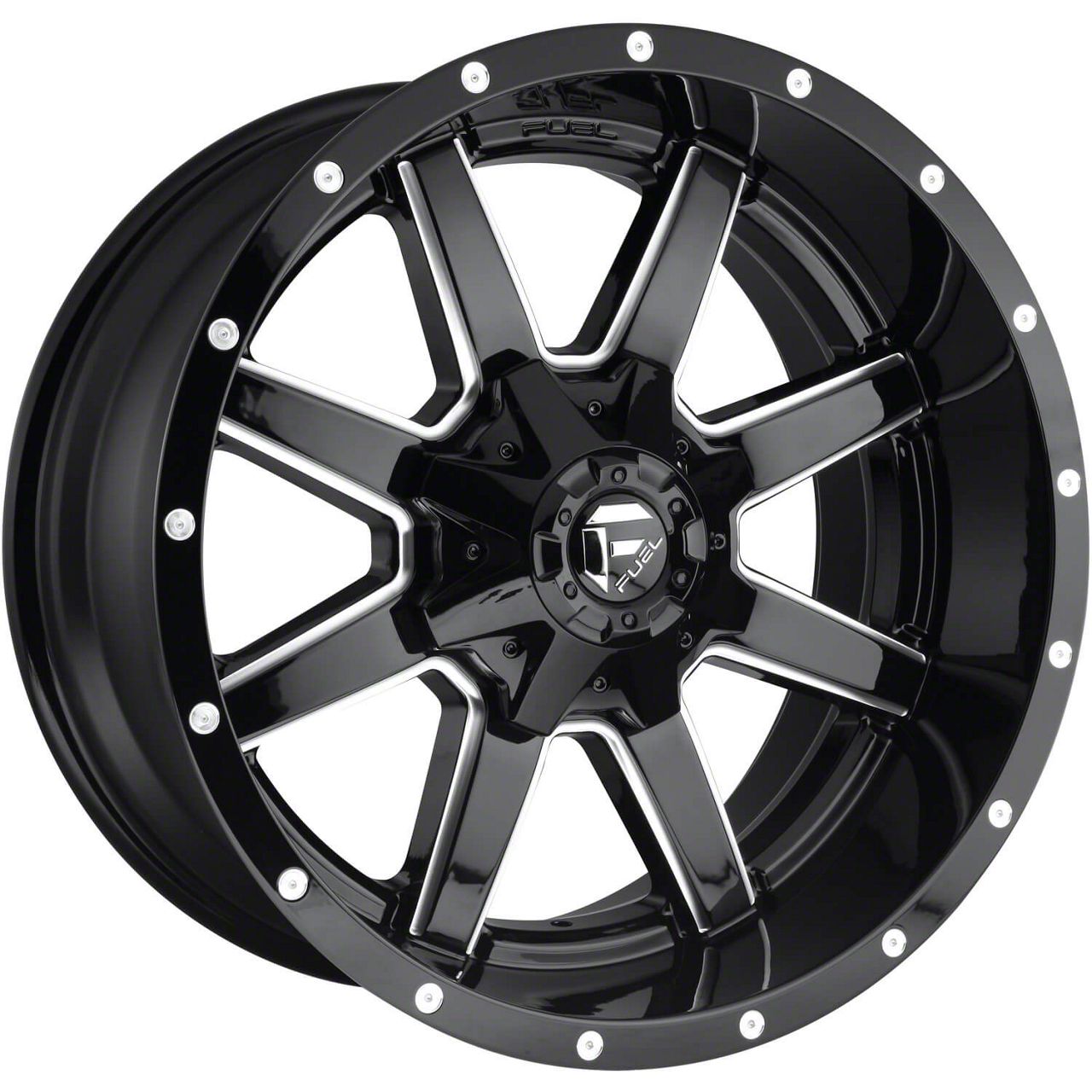 The 18x9 Fuel Wheels Maverick Gloss Black Milled 8-Lug Wheel is completed in a high-quality gloss black finish, with steel milled accents. Thanks to a durable clear coat, the finish looks amazing and also protects against the rigors of driving.