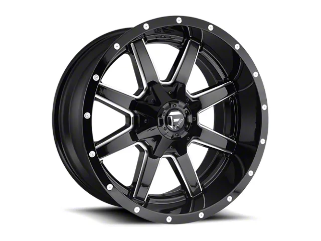 This 20x9 Fuel Wheels Maverick Gloss Black Milled 8-Lug Wheel is completed in a high-quality gloss black finish with steel milled accents that will make the wheel the envy of everyone. There is a durable clear coat that protects against driving hazards.One-Piece Cast Aluminum Construction. This wheel is manufactured using gravity casting. Gravity casting is the process of pouring a molten aluminum alloy into a wheel mold or form utilizing the earth's own gravity to help fill the mold. The result is a strong, durable wheel that has the same good looks as a more expensive wheel, at a fraction of the price.