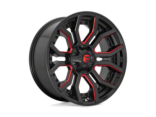 Fuel Wheels Rage Gloss Black with Red Tinted Clear 8-Lug Wheel; 22x10; -18mm Offset The Fuel Wheels Rage Gloss Black with Red Tinted Clear 8-Lug Wheel combines a sleek, sophisticated design with premium construction that enhances the visual appeal and complements a wide range of vehicle styles. This wheel is perfect for those seeking to make a bold statement while maintaining elegance and robustness.