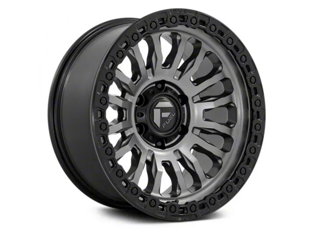 Fuel Wheels Rincon Matte Gunmetal with Black Lip 8-Lug Wheel; 20x9; 1mm Offset - This wheel's elegant design will certainly enhance your vehicle's aesthetic, complementing its luxury and performance. The unique styling of this wheel makes it an ideal choice for a standout quality of your ride, reflecting the premium quality associated with the Fuel Wheels brand.
