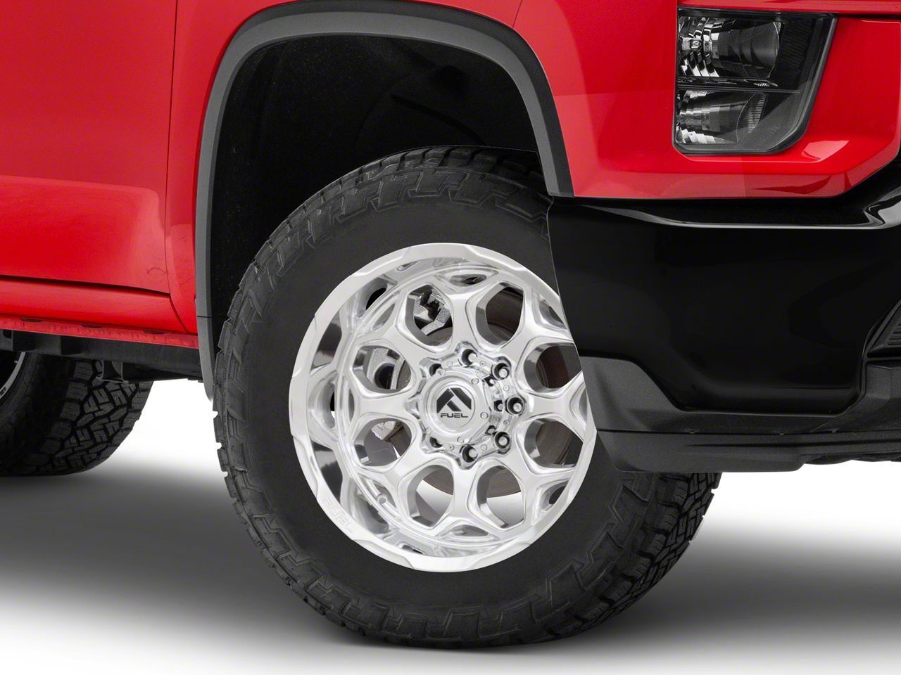 Application Elevate your driving experience with the Fuel Wheels Scepter Polished Milled 8-Lug Wheel; 20x9; 1mm Offset, featuring a backspacing of 5.039 Inch, 128mm and a bolt pattern of 8 x 180mm (8 x 7.08661-Inch). Designed to fit the 2020-2026 Silverado 2500 HD models, this wheel enhances alignment, stability, and fit with your vehicle. Sold individually.