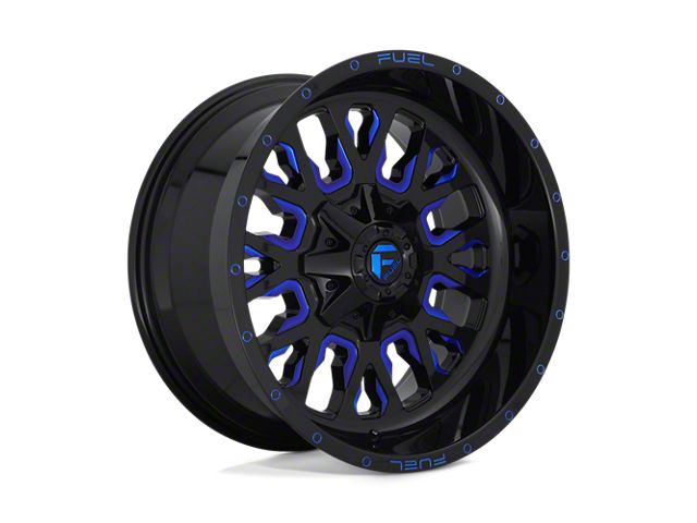 Fuel Wheels Stroke Gloss Black with Blue Tinted Clear 8-Lug Wheel; 20x9; 1mm Offset has a unique aesthetic appeal, combining a rugged finish with a sleek design. This striking design enhances the visual impact of any vehicle, making it a standout on the road. Perfect for those seeking a balance of toughness and style.