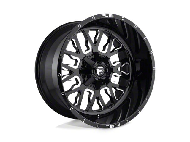 Fuel Wheels Stroke Gloss Black Milled 8-Lug Wheel; 22x12; -44mm Offset The Fuel Wheels Stroke Gloss Black Milled 8-Lug Wheel combines a sleek, sophisticated design with premium construction that enhances the visual appeal and complements a wide range of vehicle styles. This wheel is perfect for those seeking to make a bold statement while maintaining elegance and robustness.
