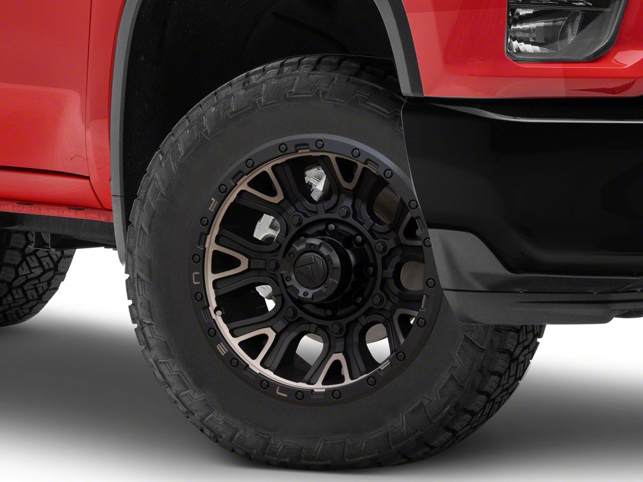 Fuel Wheels Traction Matte Black with Double Dark Tint 8-Lug Wheel; 20x10; -18mm Offset The Fuel Wheels Traction Matte Black with Double Dark Tint 8-Lug Wheel combines a sleek, sophisticated design with premium construction that enhances the visual appeal and complements a wide range of vehicle styles. This wheel is perfect for those seeking to make a bold statement while maintaining elegance and robustness.