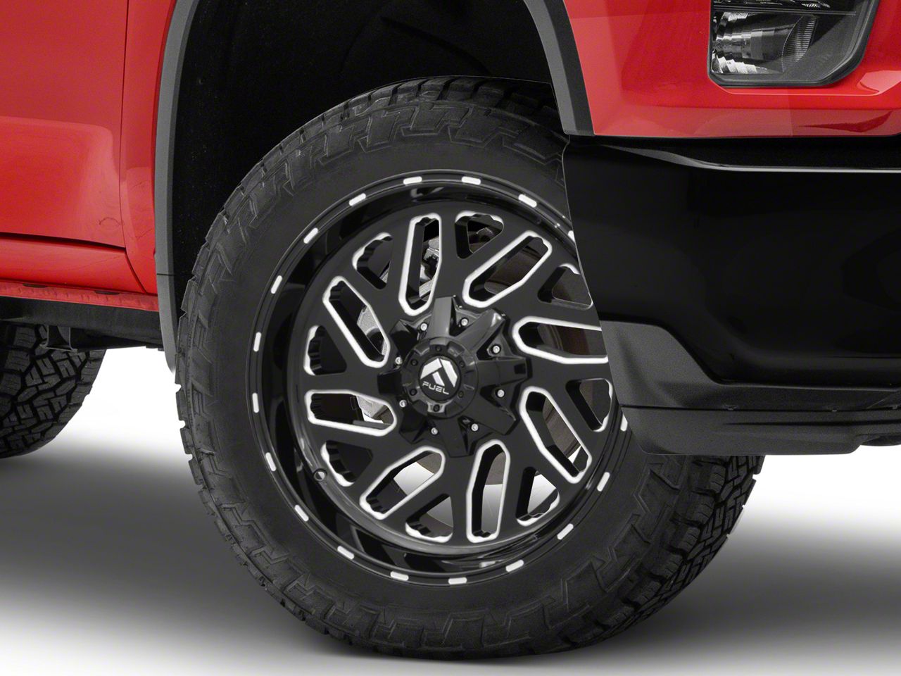 Fuel Wheels Triton Gloss Black Milled 8-Lug Wheel; 22x9.5; 20mm Offset The Fuel Wheels Triton Gloss Black Milled 8-Lug Wheel combines a sleek, sophisticated design with premium construction that enhances the visual appeal and complements a wide range of vehicle styles. This wheel is perfect for those seeking to make a bold statement while maintaining elegance and robustness.
