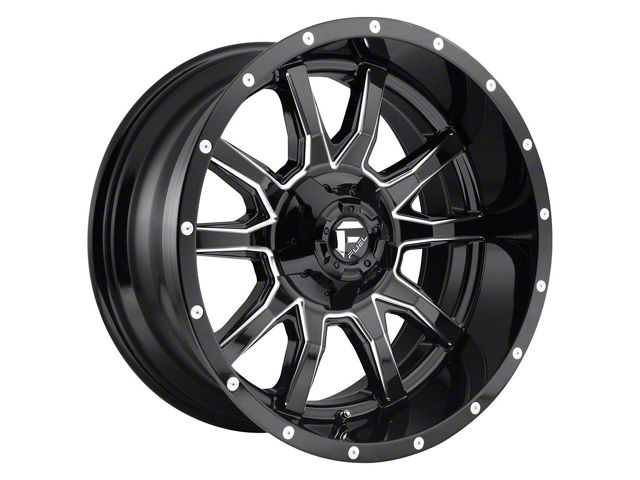 Fuel Wheels Vandal Gloss Black Milled 8-Lug Wheel; 20x9; 20mm Offset offers a striking balance between style and durability. The design speaks to the brand's commitment to quality, enhancing the vehicle's appearance with its distinct look. This wheel, with its unique aesthetics, is ideal for drivers who appreciate a blend of modern design and robust functionality.