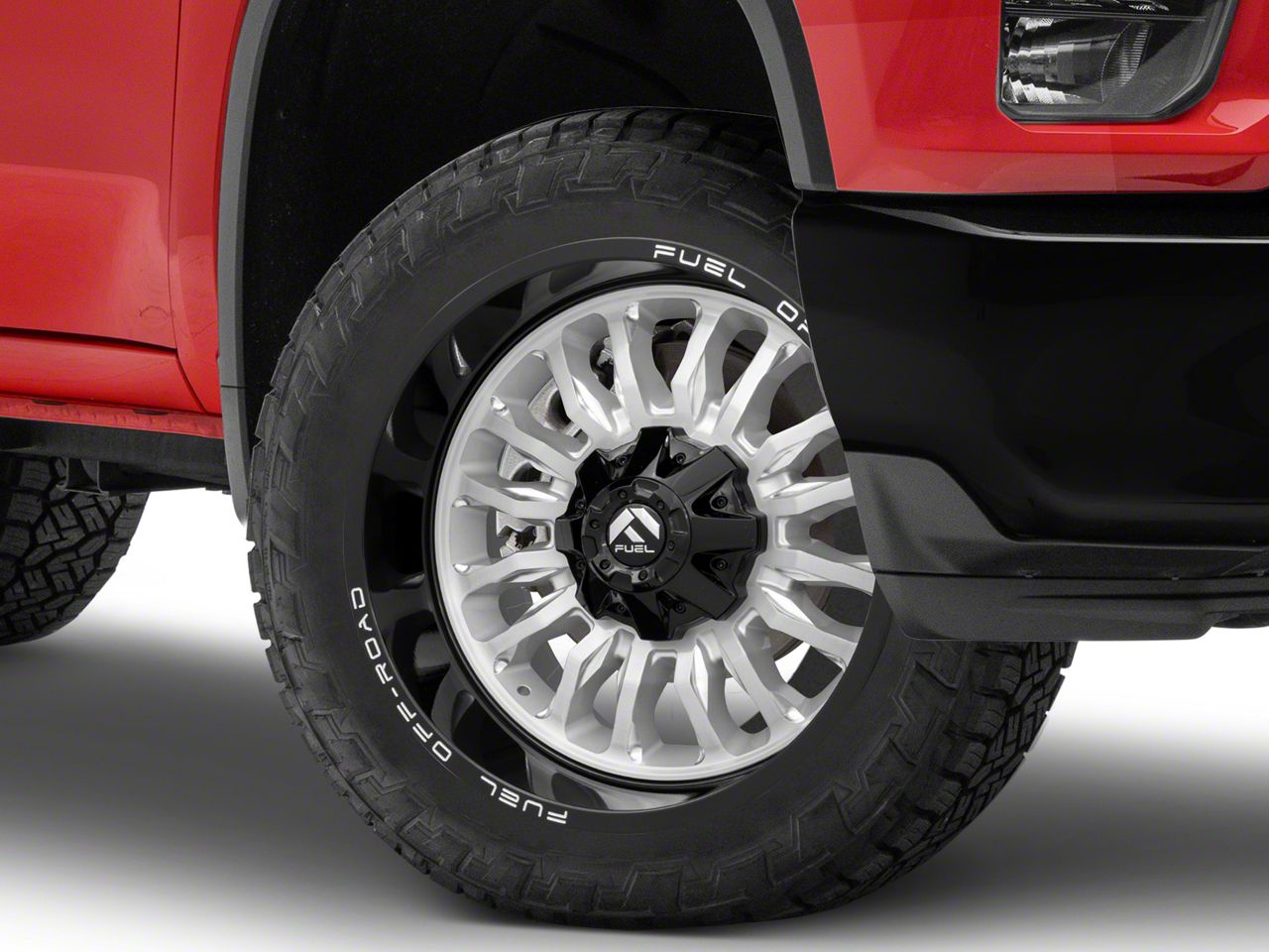 Fuel Wheels Arc Silver Brushed Face with Milled Black Lip 8-Lug Wheel; 22x12; -44mm Offset The Fuel Wheels Arc Silver Brushed Face with Milled Black Lip 8-Lug Wheel combines a sleek, sophisticated design with premium construction that enhances the visual appeal and complements a wide range of vehicle styles. This wheel is perfect for those seeking to make a bold statement while maintaining elegance and robustness.
