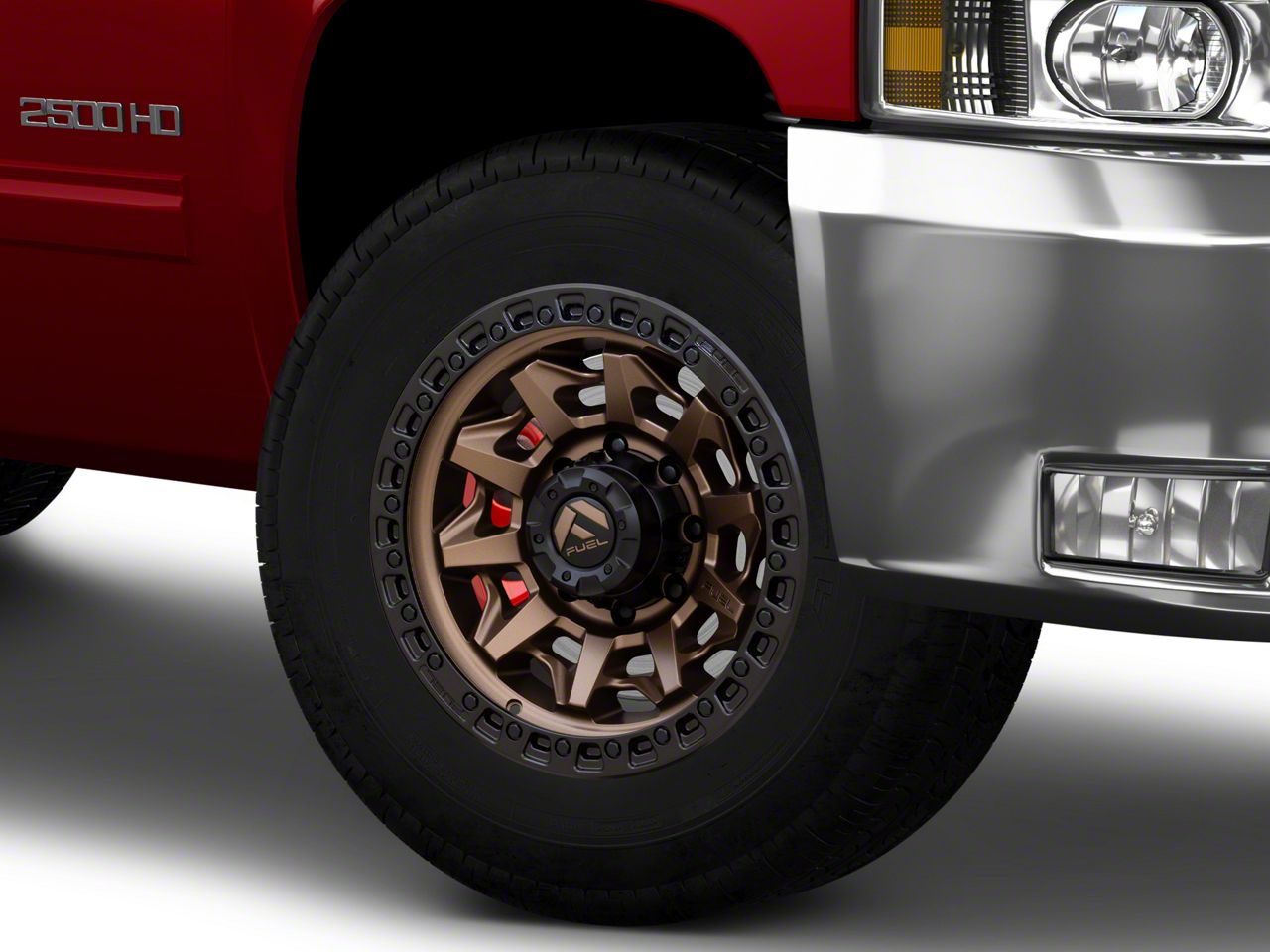 Fuel Wheels Covert Matte Bronze with Black Bead Ring 8-Lug Wheel; 18x9; -12mm Offset The Fuel Wheels Covert Matte Bronze with Black Bead Ring 8-Lug Wheel combines a sleek, sophisticated design with premium construction that enhances the visual appeal and complements a wide range of vehicle styles. This wheel is perfect for those seeking to make a bold statement while maintaining elegance and robustness.