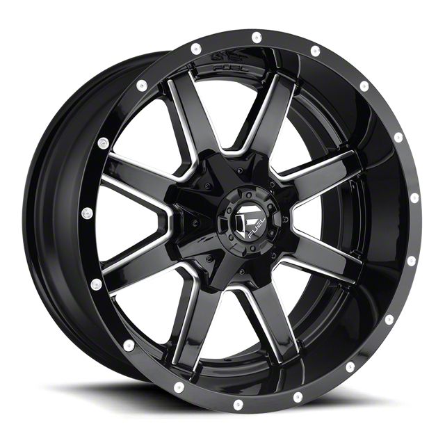The 20x9 Fuel Wheels Maverick Gloss Black Milled 8-Lug Wheel is completed in a high-quality gloss black finish with mirror cut accents for a striking contrast in appearance that everyone will envy.