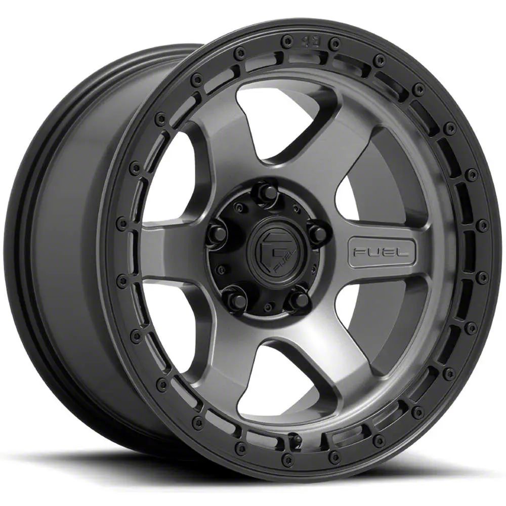 Fuel Wheels Block Matte Gunmetal with Black Ring 6-Lug Wheel; 18x9; 1mm Offset. The Fuel Wheels Block Matte Gunmetal with Black Ring 6-Lug Wheel offers a striking balance of style and refinement. Its unique design accentuates the vehicle's aesthetic, while the premium construction underscores its robust nature. This wheel is a perfect choice for those seeking both elegance and a strong visual statement.