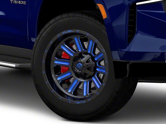 Application. This Fuel Wheels Hardline Gloss Black with Blue Tinted Clear 6-Lug Wheel; 20x9; 2mm Offset with a backspace of 5.079 Inch, 129.1mm; and bolt pattern of 6 x 139.7mm (6 x 5.5-Inch), contributes to alignment, driving stability, and ensures a perfect fit with the vehicle model. Designed to fit the 2021-2026 Tahoe. Sold individually.