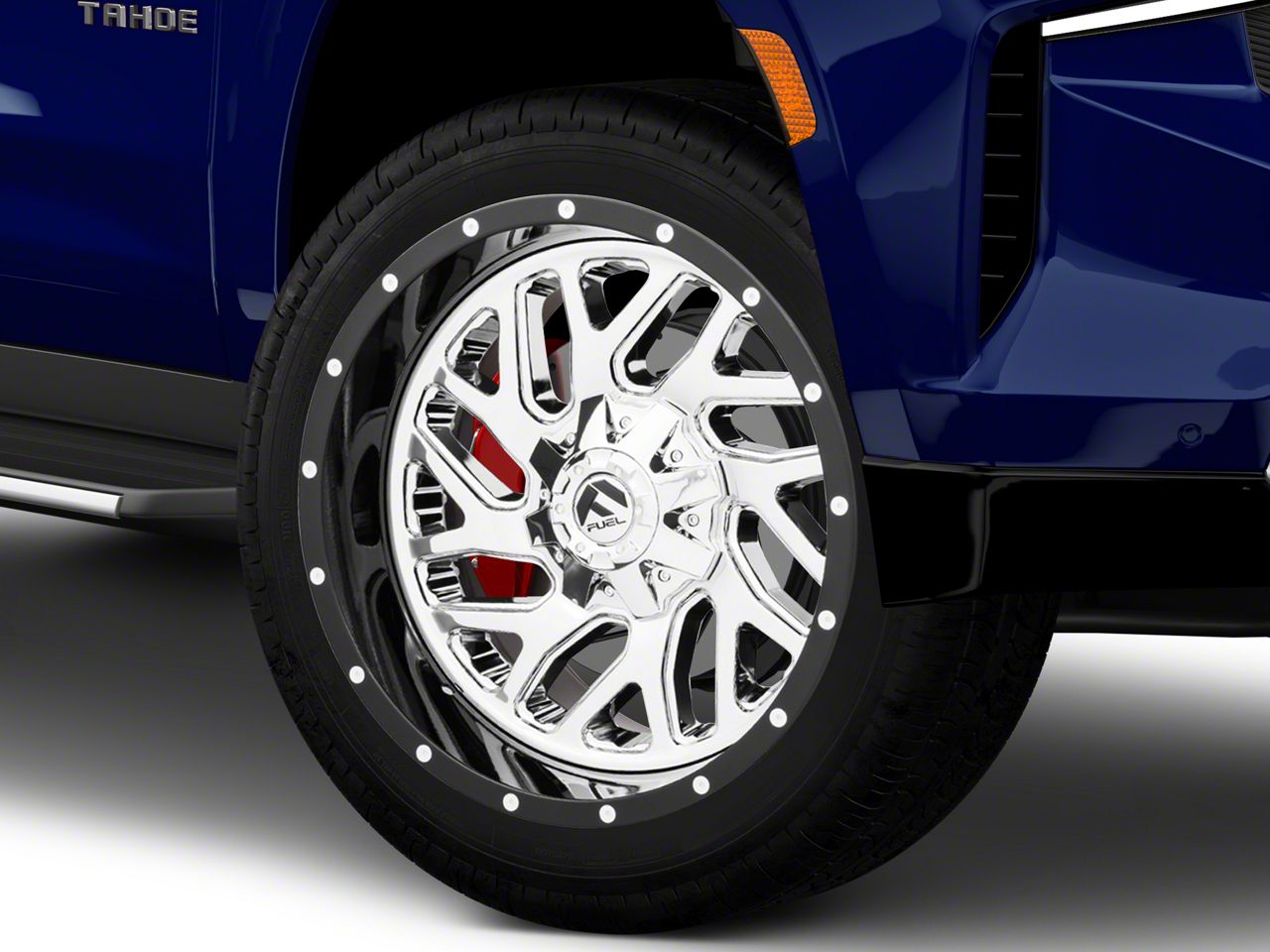 Application. This Fuel Wheels Triton Chrome with Gloss Black Lip 6-Lug Wheel; 22x10; -13mm Offset with a backspace of 4.989 Inch, 126.8mm and bolt pattern of 6 x 139.7mm (6 x 5.5-Inch) ensures impeccable alignment and driving stability. It's designed to fit the 21-23 Tahoe models, sold individually.