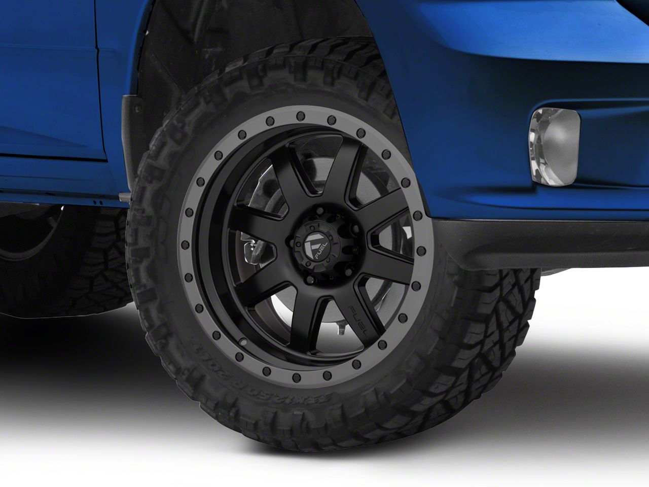 Application. This Fuel Wheels Trophy Matte Black with Anthracite Ring 5-Lug Wheel; 20x9; -12mm Offset with a backspace of 4.528 Inch, 115.1mm; and bolt pattern of 5 x 139.7mm (5 x 5.5-Inch) contributes to impeccable alignment and driving stability. Designed to fit 2009-2018 RAM 1500 models, sold individually.