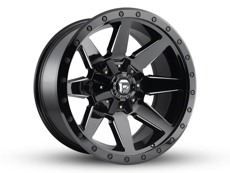 This 20x10 Fuel Wheels Wildcat Gloss Black Milled 6-Lug Wheel is completed in a high-quality gloss black finish with steel milled accents that will create a striking appearance. There's a durable clear coat that protects against driving hazards.