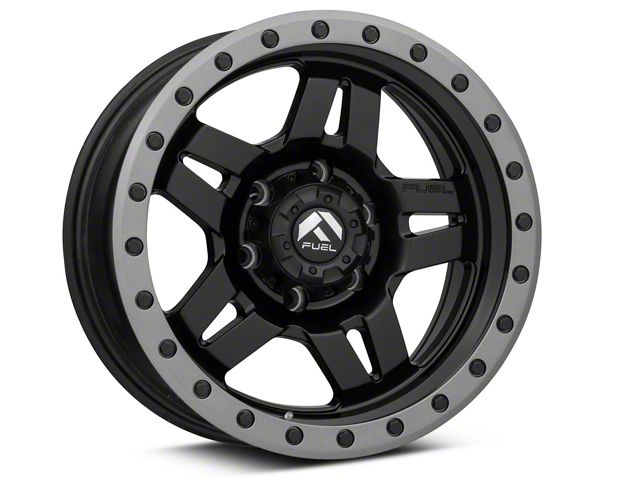 Fuel Wheels Anza Matte Black with Anthracite Ring 6-Lug Wheel; 17x8.5; 6mm Offset exudes a sleek aesthetic appeal, complementing a range of vehicle styles. Its dark stainless finish emanates sophistication, while the brand reputation of Fuel Wheels ensures robustness. This wheel seamlessly merges elegance with durability.